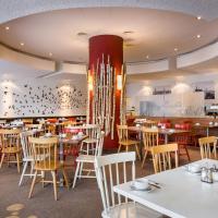 В светлом ресторане с окнами до потолка утром гости могут отведать свежеприготовленный завтрак «шведский стол», а на обед и ужин попробовать разнообразные блюда.