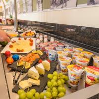 Для гостей сервируют разнообразный завтрак «шведский стол», включающий свежую выпечку, омлет, фрукты, а также сырное и мясное ассорти.