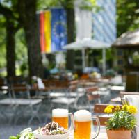 В традиционном баварском лаундже The Ammergauer Maxbräu с деревянным полом и потолком можно заказать блюда баварской кухни и пиво, которое варят прямо на месте.