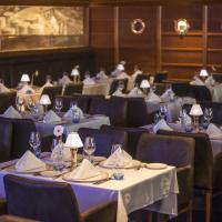 В ресторане с обслуживанием по меню подают блюда современной английской кухни.