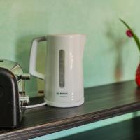 В числе других стандартных удобств — электрический чайник с бесплатными чаем и кофе.