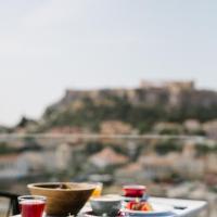 Завтракать гости могут на террасе отеля, с которой открывается панорамный вид на Акрополь.