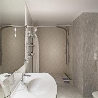 Просторная ванная комната с ванной укомплектована бесплатными туалетно-косметическими принадлежностями и феном.