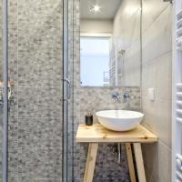 Собственная ванная комната с душем укомплектована феном и бесплатными туалетно-косметическими принадлежностями.