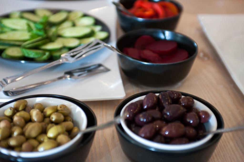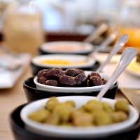В элегантном ресторане гостям подают завтрак «шведский стол», включающий греческие и интернациональные блюда, приготовленные шеф-поваром.