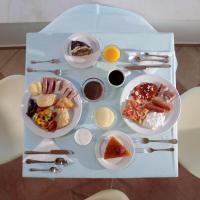 Просторные номера-студио и апартаменты обставлены современной мебелью и располагают мини-кухней с холодильником и столовой.