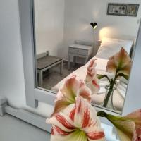 В распоряжении гостей оформленные в кикладском стиле апартаменты с кондиционером и балконом с видом на море.