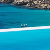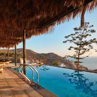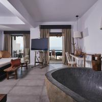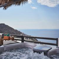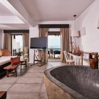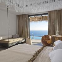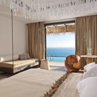 Традиционный курортный отель Myconian Utopia Relais & Chateaux с открытым бассейном и рестораном расположен на холме, всего в 100 метрах от пляжа Элиа.