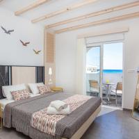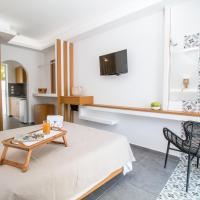 Все светлые номера-студио с деревянным полом выходят на балкон с видом на сад или Эгейское море.