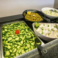 По утрам подают обильные завтраки в формате "шведский стол". Также в любое время можно посетить ресторан, где сервируются блюда европейской и греческой кухонь.