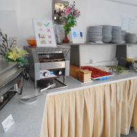 Завтрак "шведский стол" сервируют на первом этаже отеля, в комнате для завтрака.