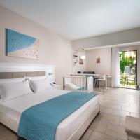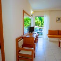 Номера отеля Porfi Beach располагают кондиционером и балконом или верандой с видом на море или пышный сад.