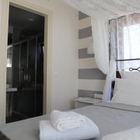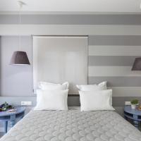 Светлые номера отеля Dimitra оформлены в сине-белых тонах и оборудованы кондиционером.
