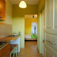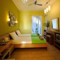 Все апартаменты и номера-студио оформлены в зеленой цветовой гамме и оснащены кондиционером и телевизором с плоским экраном и спутниковыми каналами.