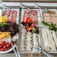 Разместиться можно в просторных номерах, в которых имеется кровать с ортопедическим матрасом, шкаф для одежды, телевизор и личная душевая комната с туалетом. Так же предлагают набор косметических средств и махровые полотенца.