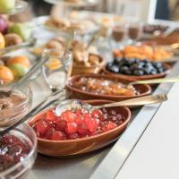 В гостинице работает ресторан, где посетители могут выпить вкусный чай, кофе и отведать десерт. На обед и ужин можно заказать изысканное блюдо из широкого перечня меню, расположиться за столиком и отдохнуть в непринужденной обстановке.