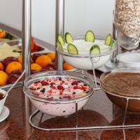 По утрам сервируются обильные завтраки в формате "шведский стол". При гостинице есть ресторан, в котором по меню можно заказать блюда европейской и греческой кухни. Все готовится из экологически чистых продуктов.