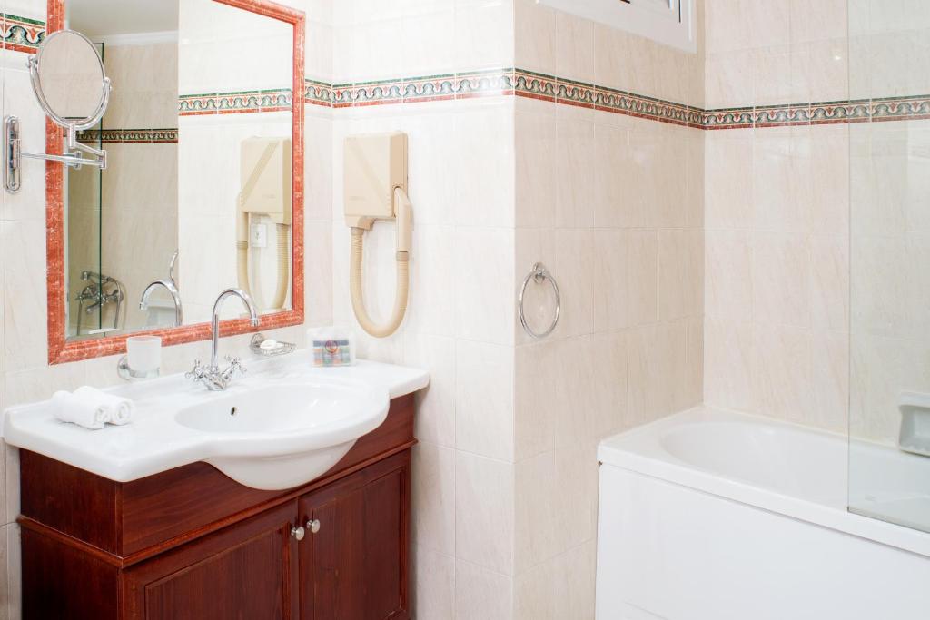 В собственной ванной комнате имеются туалетно-косметические принадлежности, тапочки и фен.