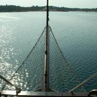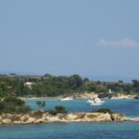 Поездка на лодке до живописного острова Диапорос занимает 5 минут.