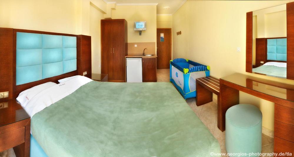 Во всех номерах и номерах-студио отеля Vergos оборудован отдельный балкон с видом на море, бассейн или сад.