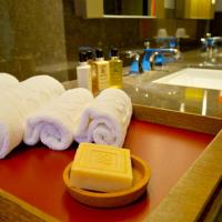 Для размещения постояльцев подготовлены просторные номера, некоторые из них имеют панорамные окна, из которых открывается красивый вид на город. Кроме того, установлена функциональная мебель, укомплектована сантехникой собственная ванная комната.