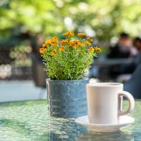 В некоторых номерах есть балкон с видом на пышный зеленый внутренний двор.