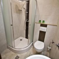 Собственная ванная комната с душем укомплектована бесплатными туалетно-косметическими принадлежностями.
