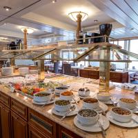 По утрам сервируется завтрак по типу "шведский стол". На территории расположен ресторан, где шеф-повар готовит изысканные блюда. Всегда из ассортимента можно выбрать полюбившиеся напитки и еду или же попробовать для себя что-то новое.