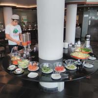Богатый завтрак, есть горячие блюда, фрукты, несколько видов напитков. Понравилось расположение отеля, в номере чисто, все хорошо спланировано. Обслуживание номеров некруглосуточное.