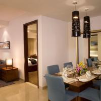 В числе удобств апартаментов Oakwood Residence Prestige Whitefield Bangalore телевизор с плоским экраном и кабельными каналами, кондиционер и гостиная зона.