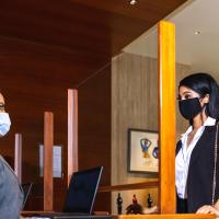 - Предусмотрены защитные экраны или перегородки между сотрудниками объекта и гостями, где необходимо