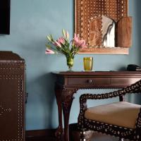 В каждом номере имеются кровать с балдахином и двойной туалетный столик.