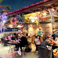 На крыше отеля работает красивый ресторан, где для комфорта гостей установлены распылители воды.