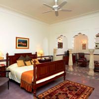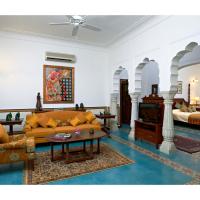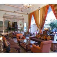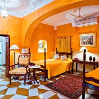В отеле Samode Haveli в распоряжении гостей гидромассажная ванна и фитнес-центр.