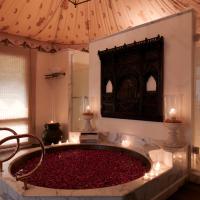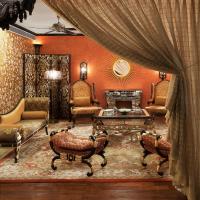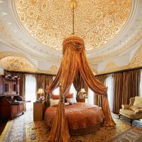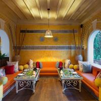 Просторные номера с кондиционером оформлены при помощи богатых тканей, элегантных ковров и ручной росписи на стенах.