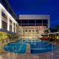 Пятизвездочный отель Radisson Blu Plaza с 3 ресторанами, баром и открытым бассейном расположен всего в 1 км от GVK One — крупнейшего торгового центра города Хайдарабад.