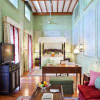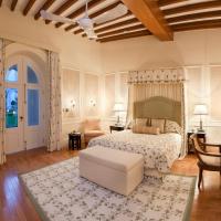 Просторные номера отеля с высоким потолком и выступающими балками оформлены в пастельных тонах, украшены тканями с цветочным мотивом и обставлены изысканной деревянной мебелью.