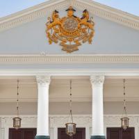 В оформлении этого роскошного 5-звездочного отеля, расположенного на высоте 610 метров над Хайдарабадом, использовано сочетание колониального и индийского стилей.