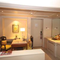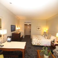 Air-conditioned rooms feature classic wood furnishings and fabrics of cream and gold.