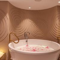Собственная ванная комната с ванной укомплектована халатами, тапочками и бесплатными туалетно-косметическими принадлежностями.