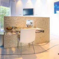 Elegant rooms are stylishly decorated with modern interiors and warm lighting.