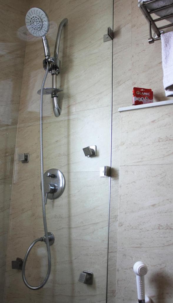 В ванных комнатах в номерах установлен душ с холодной и горячей водой.