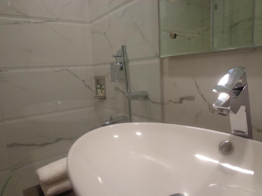 Собственная ванная комната с душем укомплектована феном и бесплатными туалетно-косметическими принадлежностями.