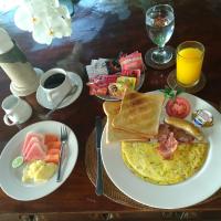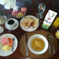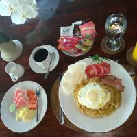 Каждое утро в ресторане под открытым небом подают американский и индонезийский завтрак.