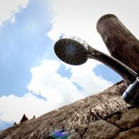 В полуоткрытых ванных комнатах можно принять горячий душ.