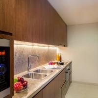 Стильные апартаменты оснащены хорошо оборудованной кухней и домашним кинотеатром.
