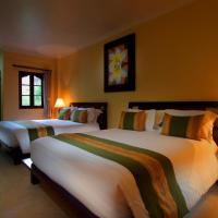 В отеле Adi Dharma к услугам гостей тропический сад, спа-центр, открытый бассейн с баром у кромки и детский бассейн.