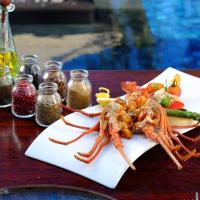 В ресторане Allspice с видом на белый песчаный пляж гостям подают разнообразные блюда японской, тайской и западной кухни.