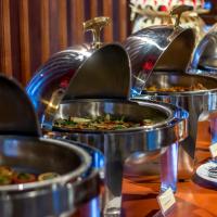 В ресторане Kamani с видом на бассейн подают блюда интернациональной кухни.