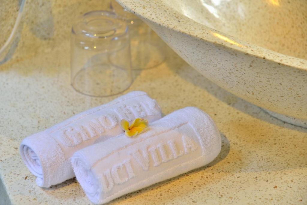 На всех виллах есть собственный открытый бассейн и небольшой сад.